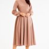 Sukienka mini o rozkloszowanym kroju łączy elegancję z lekkością. Półokrągły dekolt subtelnie podkreśla szyję i ramiona, a ozdobne wiązanie nadaje całości oryginalnego charakteru. Długie bufiaste rękawy zakończone mankietem z gumką dodają lekkości i kobiecego uroku. Rozkloszowany dół miękko układa się w ruchu, zapewniając swobodę i elegancki efekt. Model sprawdzi się zarówno na spotkania towarzyskie, jak i eleganckie okazje.