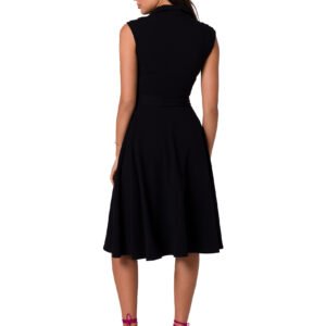 Sukienka bez rękawów z kołnierzykiem i rozpinana na przodzie, z lekko rozkloszowanym dołem. Idealna do pracy i na spacer w ciepłe dni.