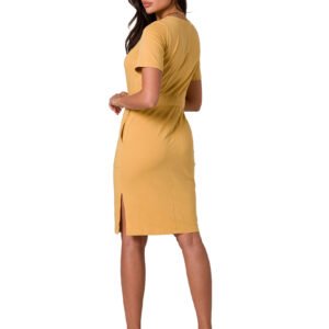 Sukienka z dzianiny bawełnianej, dopasowana, z naszytymi kieszeniami i paskiem to elegancka i wygodna propozycja na co dzień.