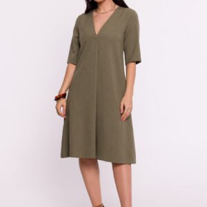 Sukienka z tkaniny to wyjątkowy przykład polskiego designu, łączącego prostotę formy, funkcjonalność i elegancję. Model ten, utrzymany w kształcie trapezu, prezentuje się niezwykle stylowo i jest doskonałym wyborem na wiele okazji. Sukienka jest wygodna w zakładaniu, ponieważ wsuwa się ją przez głowę, co sprawia, że noszenie jej jest szybkie i komfortowe. Krótkie rękawy dodają sukience lekkości, nadając jej uniwersalny charakter, idealny na cieplejsze dni. Z tyłu znajduje się kryty zamek, który dodaje sukience elegancji i ułatwia jej ubieranie. Kieszenie umieszczone w bocznych szwach to praktyczny element, który nadaje sukience nonszalancji i sprawia, że staje się jeszcze bardziej funkcjonalna. Brak podszewki sprawia, że sukienka jest lekka i przyjemna dla skóry, doskonale sprawdzając się w letnie dni. Projekt i produkcja sukienki odbywają się w Polsce, co podkreśla lokalny charakter i dbałość o jakość wykonania. Ta sukienka to nie tylko wyraz elegancji, ale także dumy z polskiego rzemiosła i designu, łączącego w sobie prostotę formy z wysokimi standardami komfortu.