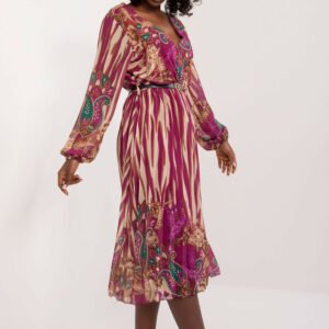 Ta sukienka jest doskonałym wyborem na codzienne noszenie, łącząc w sobie wygodę i styl w perfekcyjny sposób. Jej rozkloszowany fason nadaje lekkości i swobody ruchom, sprawiając, że każdy krok jest pełen gracji i wdzięku. Zaprojektowana z myślą o różnorodnych okazjach, ta sukienka będzie równie odpowiednia do pracy, jak i na spotkanie ze znajomymi. Kolorowy nadruk dodaje jej charakteru i energii, nadając niepowtarzalny akcent każdemu outfitowi. Wykonana głównie z poliestru, sukienka jest nie tylko trwała, ale także łatwa w pielęgnacji, co sprawia, że idealnie nadaje się na aktywne dni. Jej midi długość jest zarówno modna, jak i praktyczna, pasująca do wielu różnych sylwetek i stylizacji. Dekolt kopertowy dodaje subtelnej kobiecości, podczas gdy pasek podkreśla talię, dodając sukience lekkości i elegancji. Bufiasty długi rękaw nadaje sukience unikalnego charakteru, tworząc harmonijną równowagę między nowoczesnym stylem a delikatnym urokiem. Dodatkowo, obecność podszewki zapewnia komfort noszenia i optymalne dopasowanie, sprawiając, że ta sukienka staje się nieodłącznym elementem garderoby dla wszystkich kobiet ceniących sobie wygodę, styl i funkcjonalność.