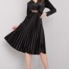 Czarna sukienka damska z falbaną. Sukienka z długim rękawem, w pasie pasek do wiązania. Idealna na wieczór.