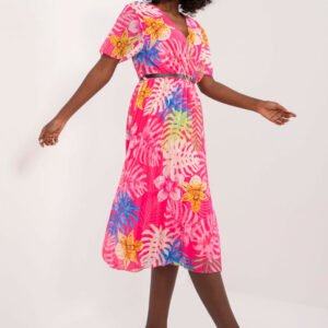 Ta sukienka to kwintesencja codziennej elegancji, która sprawi, że każdy dzień będzie wyjątkowy. Jej rozkloszowany fason zapewnia swobodę ruchów, a zarazem podkreśla kobiecą sylwetkę. Dolna część sukienki ozdobiona jest plisami, dodając lekkości i delikatności całej stylizacji. Wykonana z poliestru, ta sukienka nie tylko prezentuje się świetnie, ale również jest łatwa w pielęgnacji i przyjemna w noszeniu. Jej długość midi sprawia, że jest odpowiednia na wiele okazji, od spacerów po mieście po spotkania ze znajomymi. Krótki rękaw zapewnia komfort noszenia nawet w cieplejsze dni, podczas gdy dekolt kopertowy dodaje sukience subtelnego uroku i kobiecego wyrazu. Sukienka wyposażona jest w zapinany pasek, który podkreśla talię i nadaje sylwetce proporcje. Z podszewką zapewniającą dodatkowy komfort noszenia, ta sukienka to połączenie stylu, wygody i elegancji, które sprawi, że będziesz czuła się pewnie i pięknie każdego dnia. Idealna na codzienne wyjścia, ta sukienka stanie się szybko ulubionym elementem Twojej garderoby.