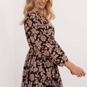 Sukienka bombka z wiskozową podszewką to doskonały wybór dla kobiet, które pragną połączyć codzienną wygodę z modnym stylem. Jej rozkloszowany fason pięknie modeluje sylwetkę, nadając lekkości i dziewczęcego uroku. Nadruk w kwiaty wprowadza do stylizacji świeżość i radosny charakter, idealnie nadając się na różne okazje, zarówno do pracy, jak i na co dzień. Wykonana z poliestru, sukienka jest przewiewna i komfortowa, co sprawia, że doskonale sprawdzi się w cieplejsze dni. Długość mini oraz długi rękaw tworzą zgrabną całość, a dekolt w serek dodaje elegancji. Sukienka nie posiada zapięcia, co ułatwia zakładanie i zapewnia swobodę noszenia. To idealny wybór na casualowe spotkania i codzienne wyjścia, łączący komfort z modnym wyglądem.