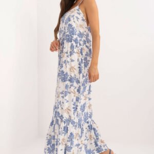 Ta letnia sukienka to idealny wybór na codzienne stylizacje. Wykonana z przewiewnej wiskozy, zapewnia komfort w ciepłe dni. Rozkloszowany fason midi nadaje sukience lekkości i swobodnego charakteru, idealnie podkreślając sylwetkę. Delikatny nadruk w kwiaty dodaje jej romantycznego uroku i kobiecości. Sukienka na ramiączkach z prostokątnym dekoltem pięknie eksponuje ramiona i dekolt. Dodatkowym atutem jest falbana u dołu, która dodaje całości subtelnej elegancji i ruchu. To wszechstronna sukienka, doskonała na spacery, spotkania z przyjaciółmi czy letnie wyjścia, łącząc wygodę z modnym wyglądem.