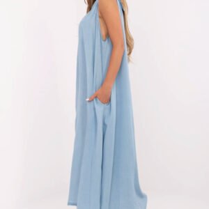 Letnia sukienka jeansowa o fasonie oversize to połączenie wygody, lekkości i casualowego stylu. Wykonana z miękkiego i przewiewnego lyocellu, doskonale sprawdzi się w cieplejsze dni. Gładki materiał i luźny krój zapewniają swobodę ruchów, a długość maxi nadaje sukience zwiewności i subtelnej elegancji. Model bez rękawów z klasycznym, okrągłym dekoltem delikatnie eksponuje ramiona. Praktyczne kieszenie ukryte w szwach bocznych zwiększają funkcjonalność, a zapięcie na guziki z tyłu dodaje uroku i ułatwia zakładanie. Idealna propozycja na codzienne letnie stylizacje.