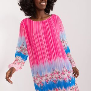 Ta sukienka z kolorowym nadrukiem to doskonały wybór na co dzień. Wykonana z dominującego poliestru, zapewnia wygodę i trwałość. Jej długość przed kolano oraz prosty fason sprawiają, że jest uniwersalna i łatwa do zestawienia z różnymi elementami garderoby. Sukienka posiada okrągły dekolt, który nadaje jej klasycznego wyglądu, a długie rękawy zapewniają komfort noszenia w chłodniejsze dni. Kolorowy nadruk dodaje jej charakteru i ożywia każdą stylizację. To idealna propozycja na casualowe wyjścia, kiedy chcesz wyglądać stylowo i czuć się swobodnie.