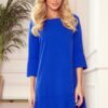 Szyfonowa sukienka z długim rękawkiem i dekoltem. Sukienka z tkaniny we wzór malwy na białym tle. Marka numoco. Produkcja polska.