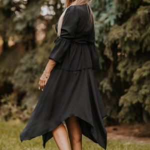 Sukienka o luźnym, wygodnym kroju, zapięcie na guziki u góry sukienki. Sukienka posiada stylowe rękawy zakończone gumką. Idealna na wiele okazji.