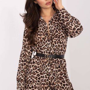 Stylowa sukienka koszulowa o prostym fasonie to idealna propozycja na co dzień dla kobiet, które lubią modę z charakterem. Motyw zwierzęcy dodaje jej drapieżnego, nowoczesnego wyrazu, jednocześnie zachowując elegancję i kobiecy styl. Model o długości mini z długim rękawem i klasycznym kołnierzykiem prezentuje się wyjątkowo stylowo i uniwersalnie. Zapięcie na guziki na całej długości nadaje jej lekkości i praktycznego charakteru, a zapinany pasek pozwala podkreślić talię i dopasować sukienkę do sylwetki. Uszyta z połączenia poliestru i elastanu, zapewnia komfort noszenia oraz swobodę ruchów. Doskonale sprawdzi się w codziennych stylizacjach, zarówno z botkami, jak i eleganckimi kozakami.