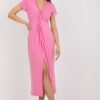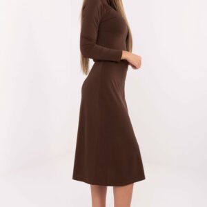Elegancka sukienka midi, idealna na różne okazje od codziennych wyjść, przez stylizacje do pracy, aż po wizytowe spotkania. Wykonana z dominującej mieszanki poliestru i wiskozy, zapewnia komfort noszenia, przewiewność oraz delikatne dopasowanie do sylwetki. Model wyróżnia się gładkim, klasycznym wzorem, który podkreśla ponadczasowy charakter sukienki. Dekolt typu łódka nadaje całości subtelnej elegancji, a długi rękaw sprawia, że kreacja świetnie sprawdza się o każdej porze roku. Wyjątkowego szyku dodają metalowe, ozdobne elementy umieszczone na prawym ramieniu oraz po lewej stronie w talii. W tych miejscach sukienkę wykończono również delikatnymi marszczeniami, które pięknie modelują sylwetkę i przyciągają wzrok. Sukienka nie posiada zapięcia, dzięki czemu jest wygodna w zakładaniu i układa się naturalnie na ciele. To doskonała propozycja dla kobiet, które cenią klasykę z nutą nowoczesnych detali.