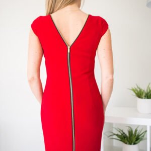 Dopasowana sukienka z francuskimi cięciami. Na plecach ozdobny zamek na całej długości. Sukienka na podszewce. Idealna na wiele okazji.