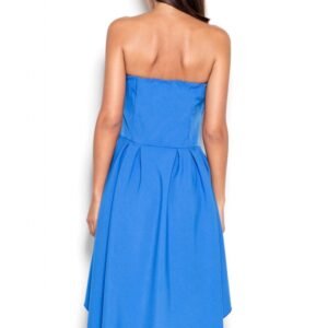 Asymetryczna sukienka z krótszym przodem, bez ramiączek. Tył sukienki wygląda identycznie jak przód z tą różnicą że jest dłuższy. Na biuście sukienka trzyma się na mocnej gumce nie powodującej uciskania.