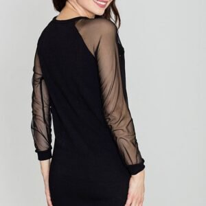 Elegancka, a zarazem sportowa sukienka z elastycznej bawełny z reglanowymi rękawami z siatki, bez podszewki, bez kieszeni.