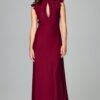 Sukienka w kobiecym, romantycznym fasonie, idealnie wpisuje się w obecne trendy. Góra gorsetowa, zmysłowo odsłania ramiona, idealnie dopasowana do figury. Sylwetka podkreślona pionowymi cięciami, z tyłu zamek. Odcinana na linii talii, dół rozkloszowany, ujęty w kontrafałdy z wydłużonym wyraźnie tyłem.