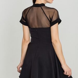 Elegancka młodzieżowa sukienka wykonana z przyjemnego materiału, natomiast góra sukienki uszyta jest z przezroczystej siatki. Sukienka posiada krótki rękawek oraz kołnierzyk. Idealna na specjalne okazje.