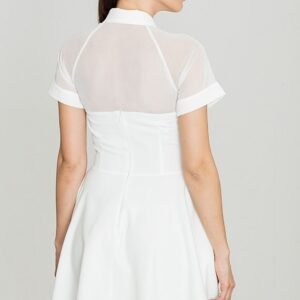 Elegancka młodzieżowa sukienka wykonana z przyjemnego materiału, natomiast góra sukienki uszyta jest z przezroczystej siatki. Sukienka posiada krótki rękawek oraz kołnierzyk. Idealna na specjalne okazje.