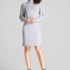 Dzianinowa dopasowana sukienka przed kolano pięknie podkresli walory kobiecej sylwetki. Rozcięcie zapinane na napy po lewym boku dodaje subtelności i tajemniczości .