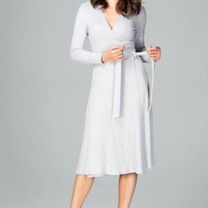 Luźna sukienka rozkloszowana z długim rękawem przed kolanko to świetna propozycja dla każdej kobiety. Model uszyty z wysokiej jakości dzianiny dodaje komfortu noszenia. Swoboda i elegancja w modnym wydaniu.