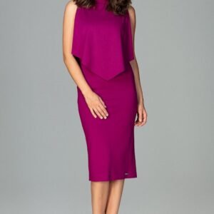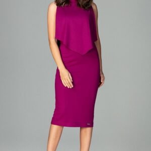 Dopasowana sukienka na stójce z doszytą peleryną. Idealna na wielkie wyjścia i romantyczne kolacje. Dodatkowym atutem jest tył peleryny i komfortowe rozcięcie sukienki. Zapinana na kryty zamek na plecach.