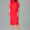 Sukienka o długości do kolana z długim rękawem, w dekolcie duże wykładane klapy. Model w pasie ma geometryczną baskinkę z tyłu rozcięcie nadające komfortu użytkowania..