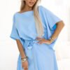 Elegancka sukienka z kopertowym dekoltem bardzo kobieca i wygodna w kolorze lila. Produkt polski. Marka numoco.