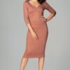 Sukienka z rękawem 3/4 z ciekawym rozcięciem na dekolcie w kształcie litery V. Model taliowany, idealny na każdą okazję.