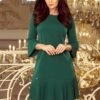Szyfonowa zwiewna sukienka z dekoltem, falbankami na podszewką. Sukienka z materiału w panterkę. Produkcja polska. Marka Numoco.