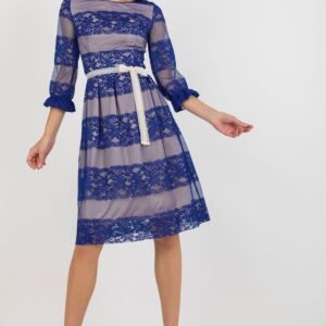 Koronkowa sukienka z rękawem 3/4, zapinana na kryty zamek. Sukienka posiada podszewkę, w talii szarfa do wiązania.