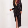 Koronkowa sukienka z długim rękawem, posiada podszewkę. Sukienka zapinana na kryty zamek, w talii pasek. Sukienka ozdobiona naszytymi kwiatami.