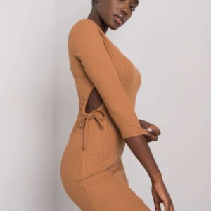 Casualowa sukienka ołówkowa z prążkowanego materiału to stylowa i wygodna propozycja na co dzień. Wykonana z bawełny z dodatkiem elastanu, dopasowuje się do sylwetki, zapewniając komfort noszenia. Model o długości mini, z okrągłym dekoltem i rękawem 3/4, podkreśla kobiecą figurę i nadaje całości nowoczesnego charakteru. Gładki wzór uzupełniony został o efektowne wycięciami po bokach z dekoracyjnym wiązaniem, które dodają sukience oryginalności. Idealna do sneakersów, botków czy klapek na każdą codzienną okazję.