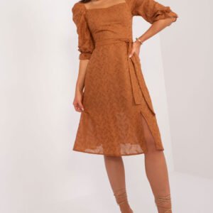 Ta letnia sukienka emanuje świeżością i lekkością, idealną na codzienne noszenie podczas ciepłych dni. Jej fason rozkloszowany dodaje jej uroku i sprawia, że jest wygodna w noszeniu, pozwalając skórze oddychać. Wykonana z przewiewnej bawełny, sukienka gwarantuje komfort noszenia nawet w najgorętsze dni. Jej długość midi nadaje eleganckiego wyglądu, jednocześnie zachowując swobodę ruchów. Krótkie rękawy z delikatną falbanką dodają lekkości i delikatności całej stylizacji. Prostokątny dekolt podkreśla szyję i dodaje subtelności. Sukienka jest zapinana na kryty zamek, co zapewnia łatwe zakładanie i zdejmowanie. Delikatny haft ozdobny na materiale dodaje jej wyjątkowego uroku i sprawia, że z łatwością przyciąga spojrzenia. Dodatkowo sukienka posiada podszewkę, co zapewnia dodatkowy komfort noszenia i zapobiega prześwitom. Bufiaste rękawy dodają romantycznego akcentu i sprawiają, że cała stylizacja nabiera lekkości i wdzięku. Pasek do wiązania podkreśla talię, dodając sukience kształtu i elegancji. To doskonały wybór na letnie spacery, spotkania ze znajomymi czy wieczorne wyjścia, gwarantując jednocześnie wygodę i styl.
