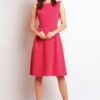 Prosta bawełniana sukienka z długim rękawem z ozdobnymi poprzecznymi paskami. Po bokach wsuwane kieszenie.