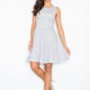 Czarująca sukienka, rozkloszowana, z rękawkiem 3/4. Pas w talii. W kolorze brązowym.