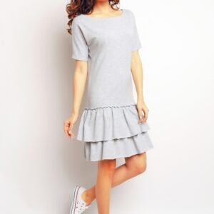 Wygodna sukienka w casualowym stylu, Wykonana z wysokogatunkowej bawełny. Góra dopasowana, na dole zaś ozdobiona dwoma rzędami falbanek, dodającymi jej dodatkowego uroku. Fason będzie się dobrze prezentował z trampami jak i z bardziej eleganckimi butami typu balerina. Sukienka idealna na co dzień.