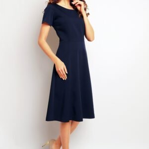 Elegancka i klasyczna sukienka, wykonana z wysokiej jakości materiału zapewniającego wygodę i komfort. Góra dopasowana natomiast dół lekko rozkloszowany. Dekolt półokrągły. Idealna propozycja na uroczystości w gronie rodziny oraz spotkania z przyjaciółmi.