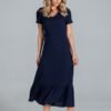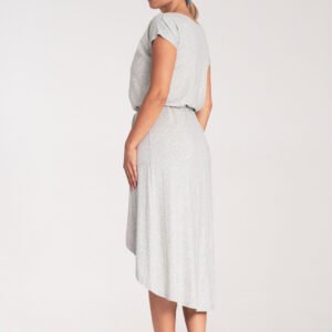 Asymetryczna sukienka z zakładanym dekoltem z krótkim rękawem. Sukienka z efektownym wiązaniem w pasie. Idealna na wiele okazji.