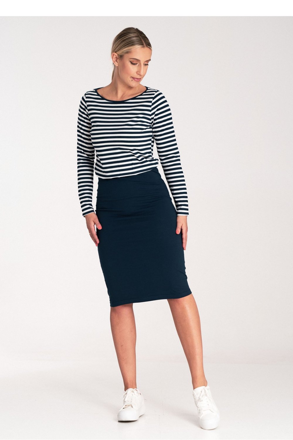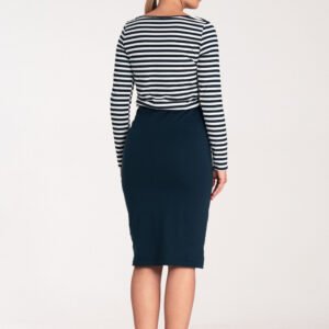 Bawełniana sukienka z długim rękawem, w paski. Model z łączonych materiałów.