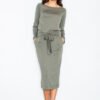 Sukienka mini z długim rękawem, długości mini. Sukienka z kieszeniami oraz ozdobnym paskiem. Wykonana z delikatnego materiału imitującego zamsz.