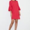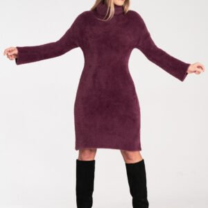 Sukienka wykonana z wyjątkowo miękkiej, puszystej dzianiny, która otula komfortem. Długie, rozkloszowane rękawy typu dzwon nadają lekkości, a odwijany golf pod szyją dopełnia całości subtelną elegancją.