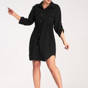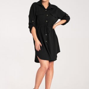 Koszulowa sukienka zapinana na guziki z klasycznym kołnierzykiem i dwiema kieszeniami na piersi. Regulowane rękawy z możliwością podpięci. Wiązanie w talii podkreślające sylwetkę.