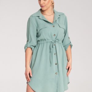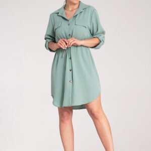 Koszulowa sukienka zapinana na guziki z klasycznym kołnierzykiem i dwiema kieszeniami na piersi. Regulowane rękawy z możliwością podpięci. Wiązanie w talii podkreślające sylwetkę.