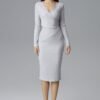 Sukienka maxi bez rękawów z kopertowym dekoltem z przodu i głębokim wycięciem na plecach. Góra delikatnie marszczona, z szerokim pasem pod biustem. Tył wiązany w kokardę.