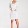 Sukienka maxi bez rękawów, z zaokrąglonym dekoltem oraz prostą górą. W talii cienki pasek z ozdobnym kwiatem z tej samej tkaniny. Dół luźny, lekko rozszerzany, wykonany z gładkiej, miękko układającej się dzianiny.