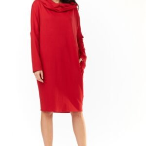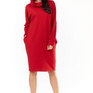 Dzianinowa sukienka z długim rękawem. Sukienka o luźnym kroju z kapturem. Sukienka posiada po bokach kieszenie. Idealna na wiele okazji.