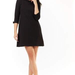 Świetna sukienka z rękawkiem 3/4. Sukienka delikatnie rozkloszowana. Na rękawkach i na dekolcie ozdobiona kokardkami.