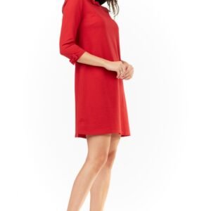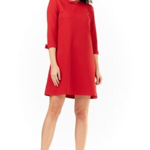 Świetna sukienka z rękawkiem 3/4. Sukienka delikatnie rozkloszowana. Na rękawkach i na dekolcie ozdobiona kokardkami.
