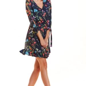 Sukienka z rękawem 3/4, dół lekko rozkloszowany z falbanką. Rękawy z ozdobnym wiązaniem. Idealna na wiele okazji.
