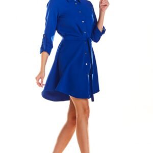 Sukienka z długim rękawem, zapinana na guziki. Sukienka posiada kołnierzyk oraz szarfę w pasie.