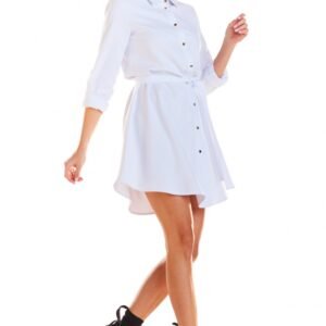 Sukienka z długim rękawem, zapinana na guziki. Sukienka posiada kołnierzyk oraz szarfę w pasie.